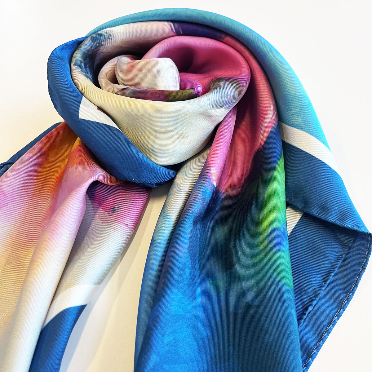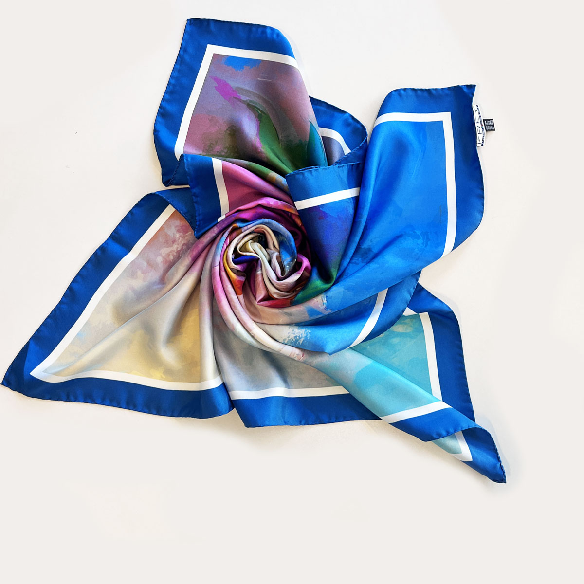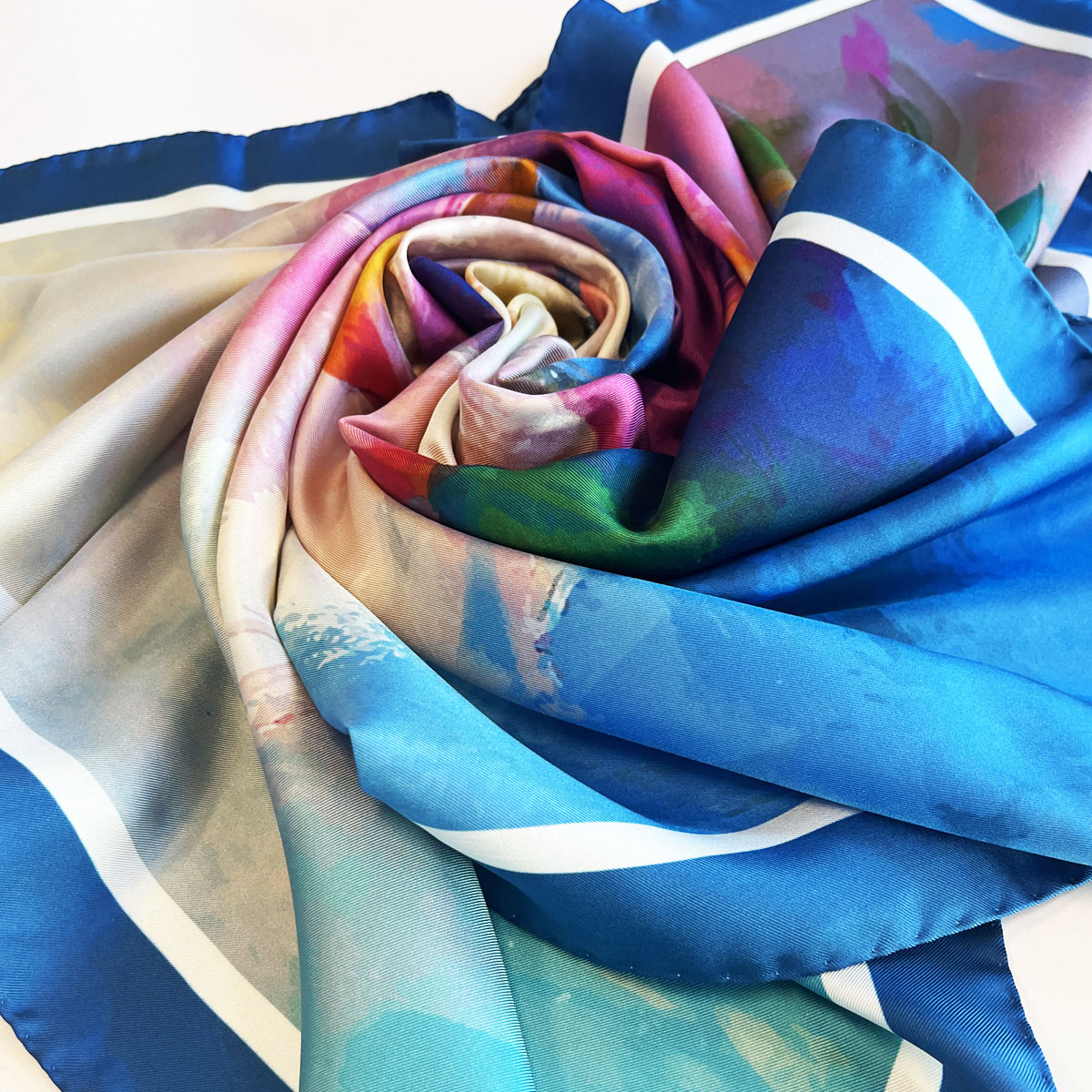 Foulard 90×90 cm in 100% seta twill, stampato ink-jet.