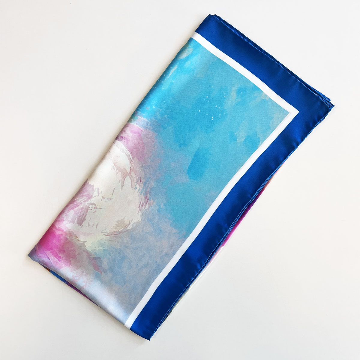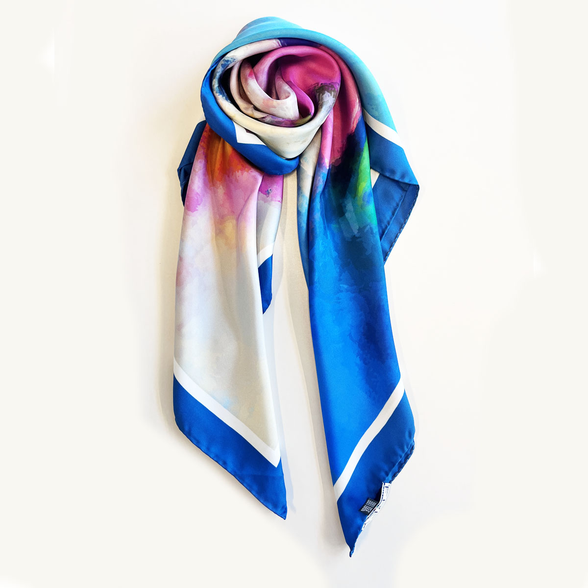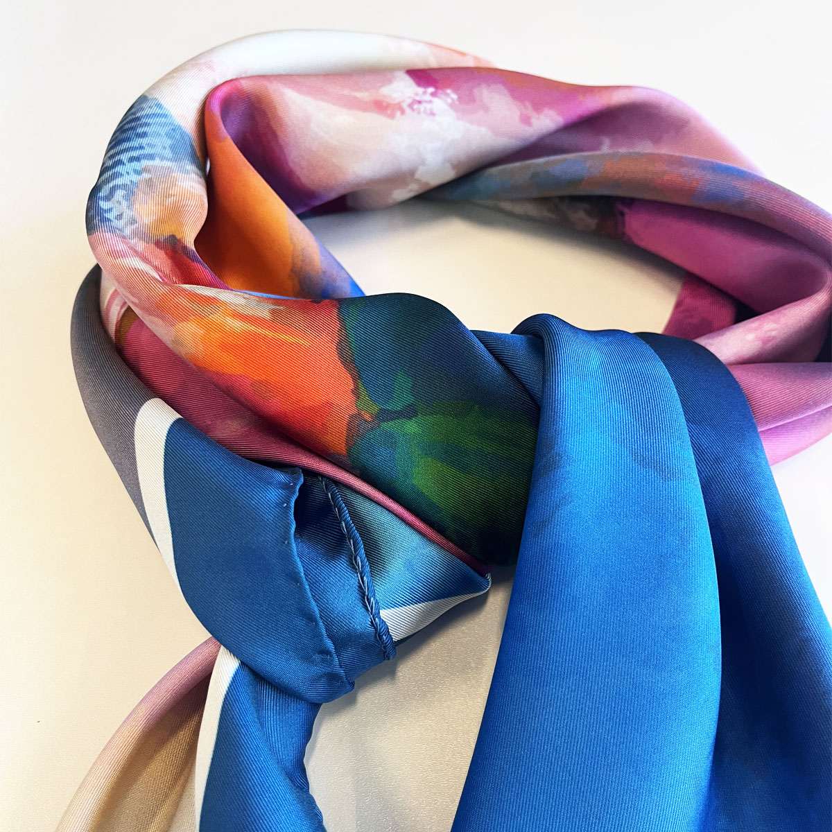 Foulard 90×90 cm in 100% seta twill, stampato ink-jet.