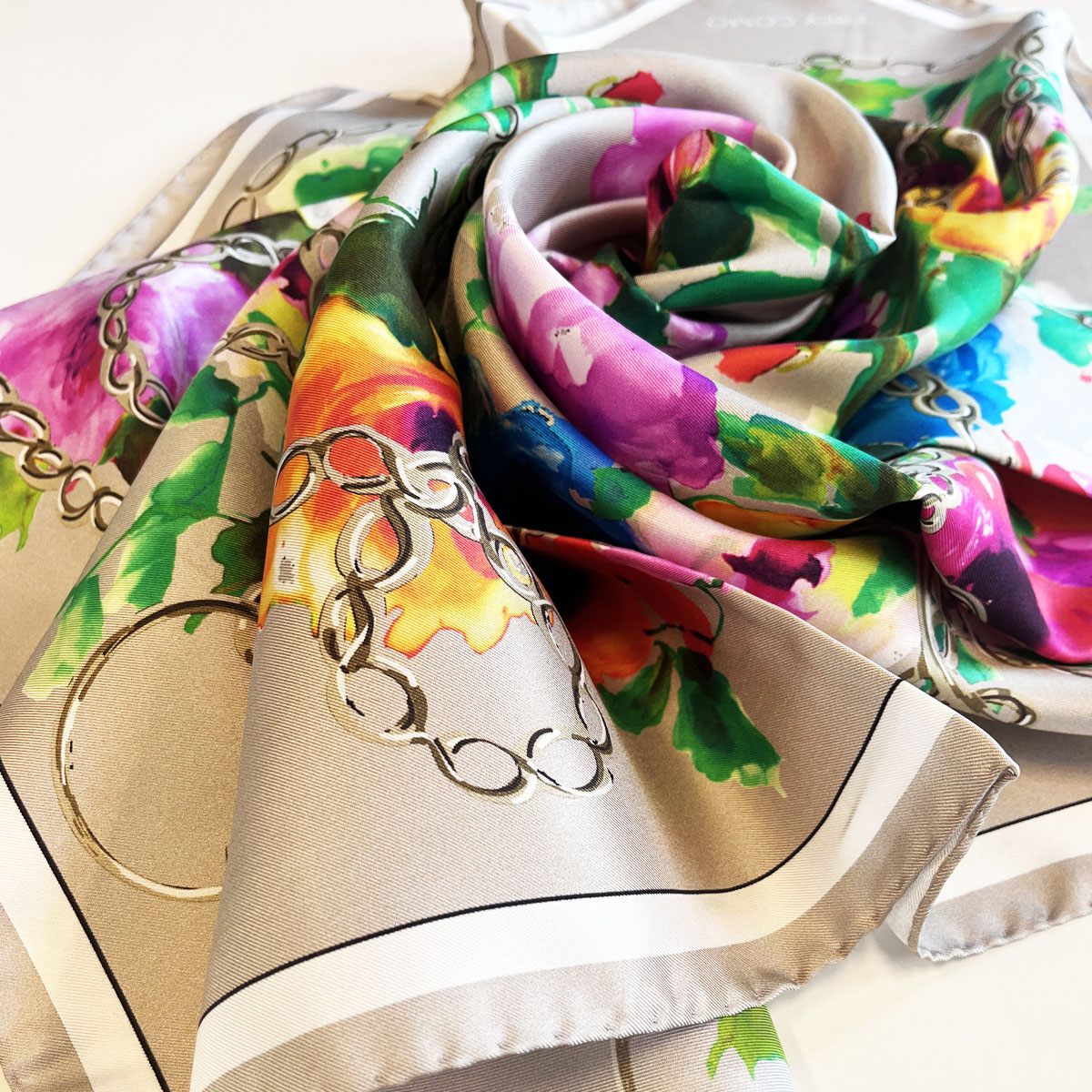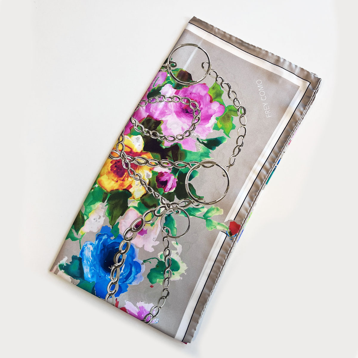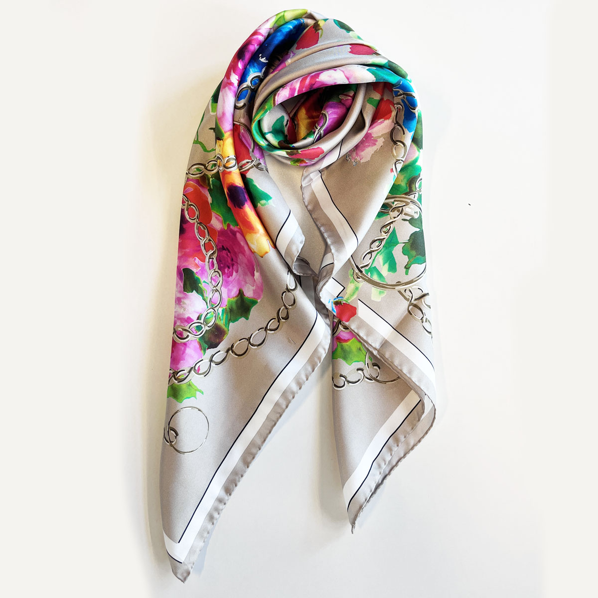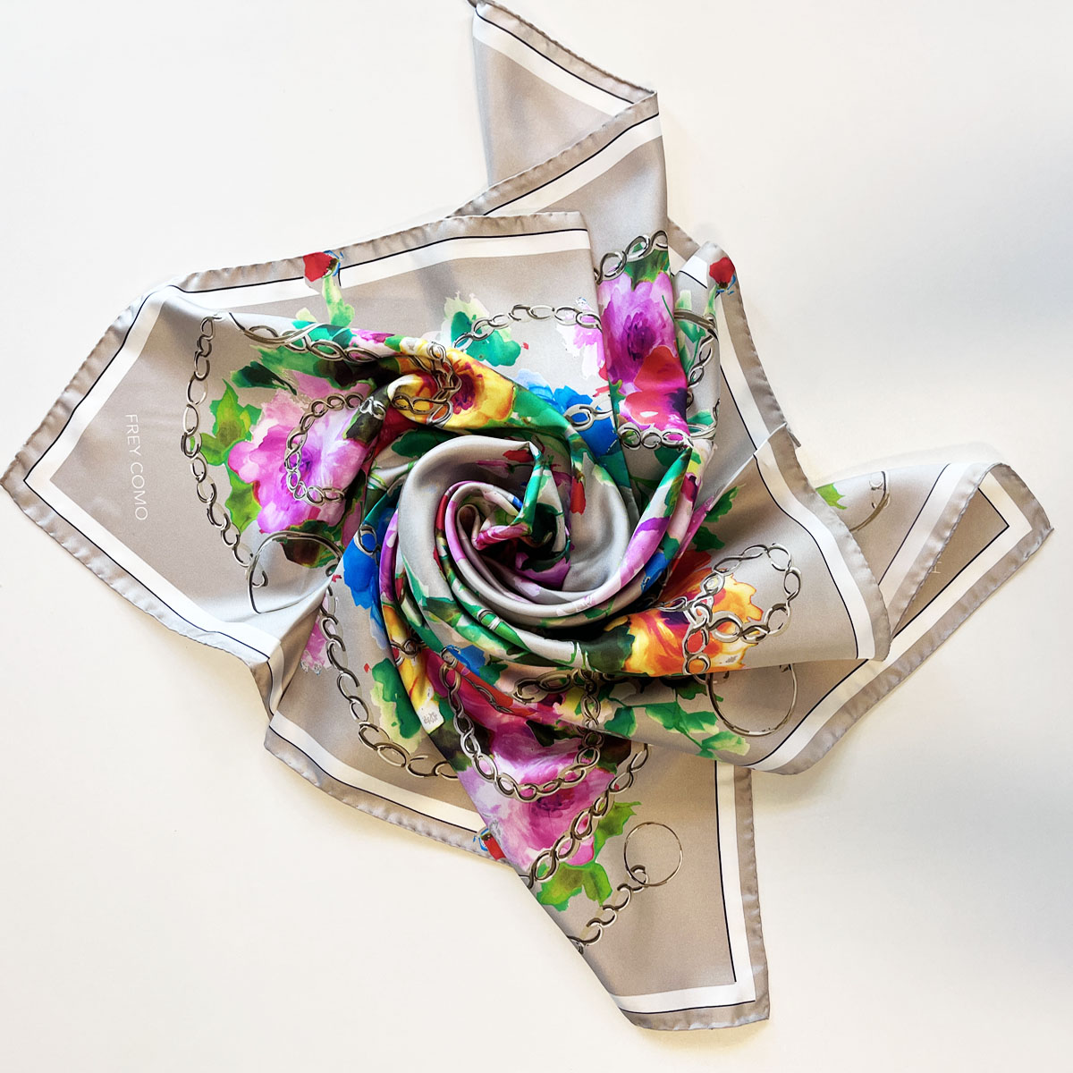 Foulard 90×90 cm in 100% seta twill, stampato ink-jet.
